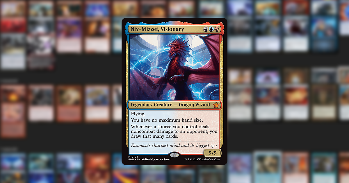 Niv-Mizzet, Visionary is a commander that combines card advantage and storm synergies, leveraging its ability control the board before winning with storm combos.